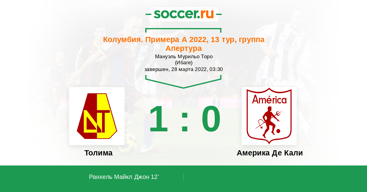 12' (1:0) Ранхель Майкл Джон (17) (Плата Андерсон (11))