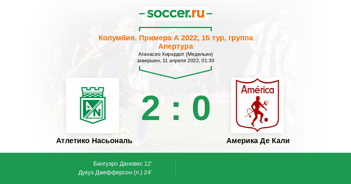 Протокол матча Атлетико Насьональ против Америка Де Кали
