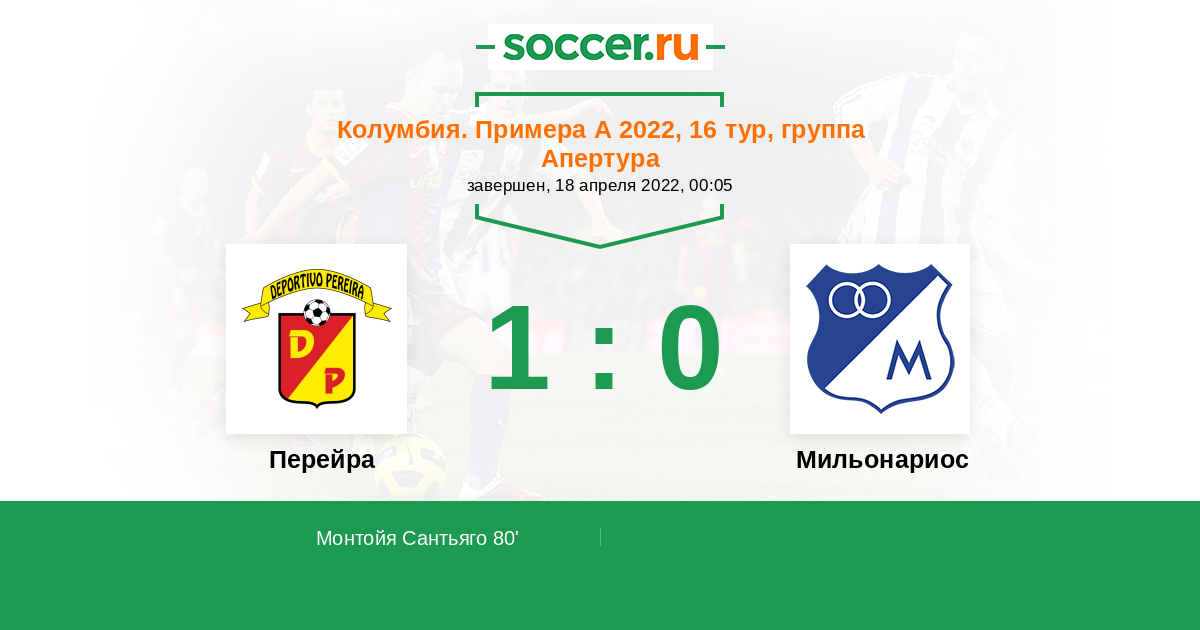Протокол матча Перейра против Мильонариос