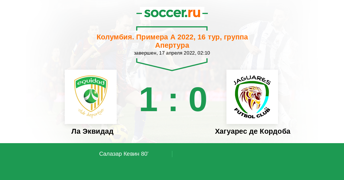 80' (1:0) Салазар Кевин (8) (Хиль Фабер (17))
