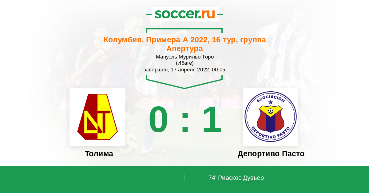 74' (0:1) Риаскос Дувьер (7) (Мариано Васкес (32))