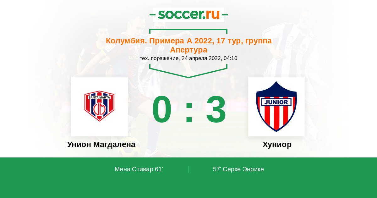 Расстановка матча Унион Магдалена против Хуниор