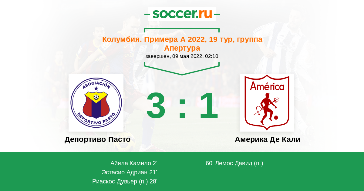 Протокол матча Депортиво Пасто против Америка Де Кали