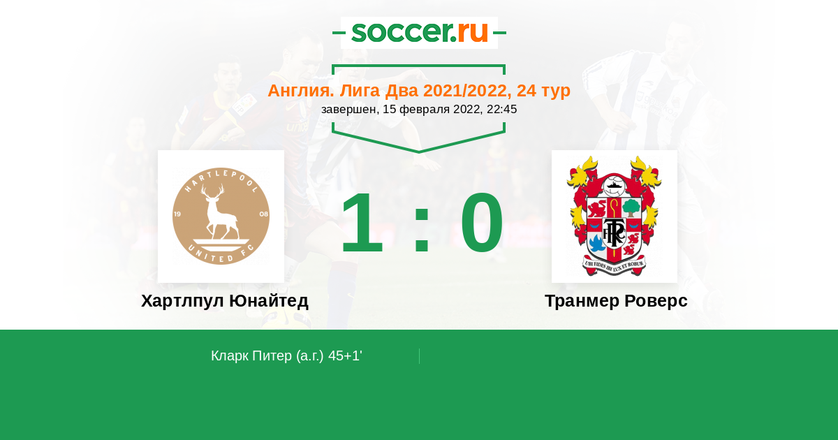 Протокол матча Хартлпул Юнайтед против Транмер Роверс