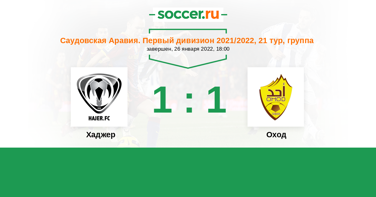 Саудовская Аравия. Первый дивизион 13.09.2021 Оход Логотип футбольный клуб Оход (Медина) 2:0 Логотип футбольный клуб Хаджер (Эль-Хофуф) Хаджер