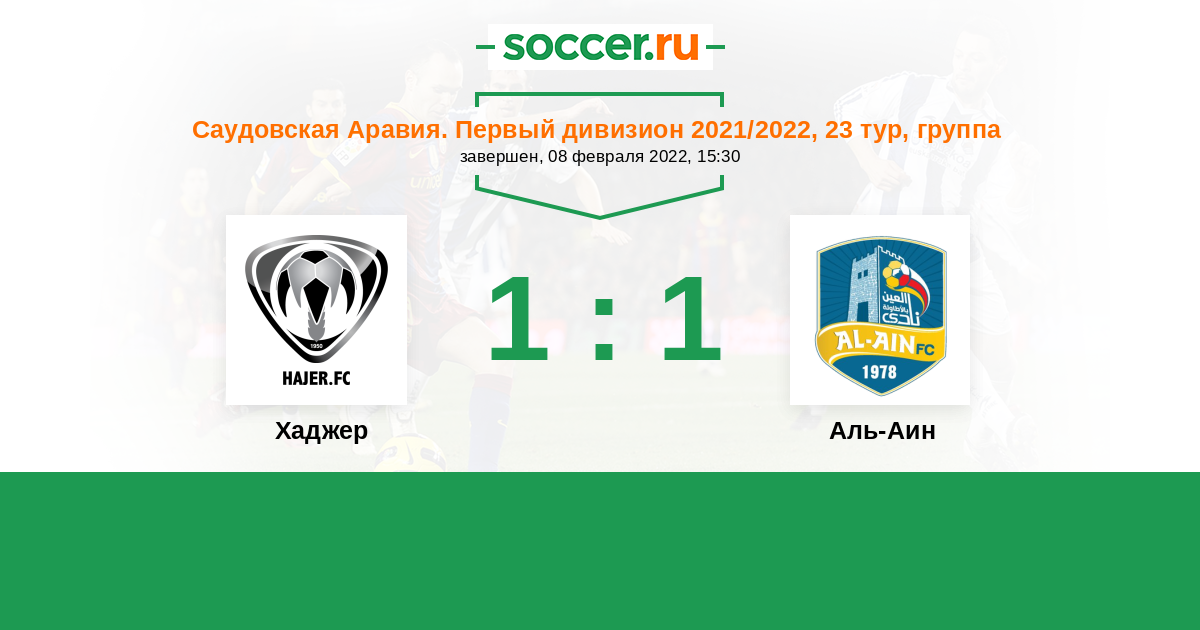 За последние 5 встреч во всех соревнованиях Хаджер имеет в активе: побед – 3, поражений – 1 и ничьих - 1. Аль-Айн в свою очередь, имеет такой результат последних встреч: победы – 3, проиграно – 0, ничьи - 2. Из этих данных можно прийти к выводу, что Аль-Айн на сегодняшний день пребывает в лучшей форме, нежели Хаджер. В любом случае, смотрите и на силу последних соперников.
