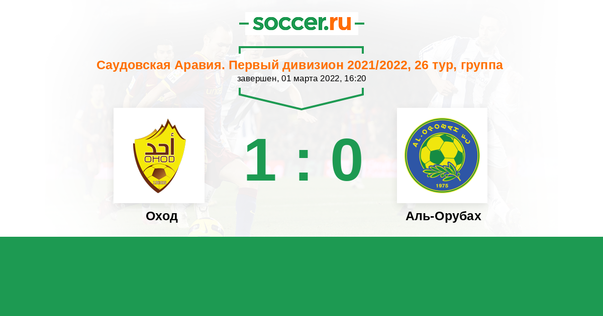 Саудовская Аравия. Первый дивизион 19.10.2021 Аль-Оруба Логотип футбольный клуб Аль-Оруба (Сакака) 1:3 Логотип футбольный клуб Оход (Медина) Оход