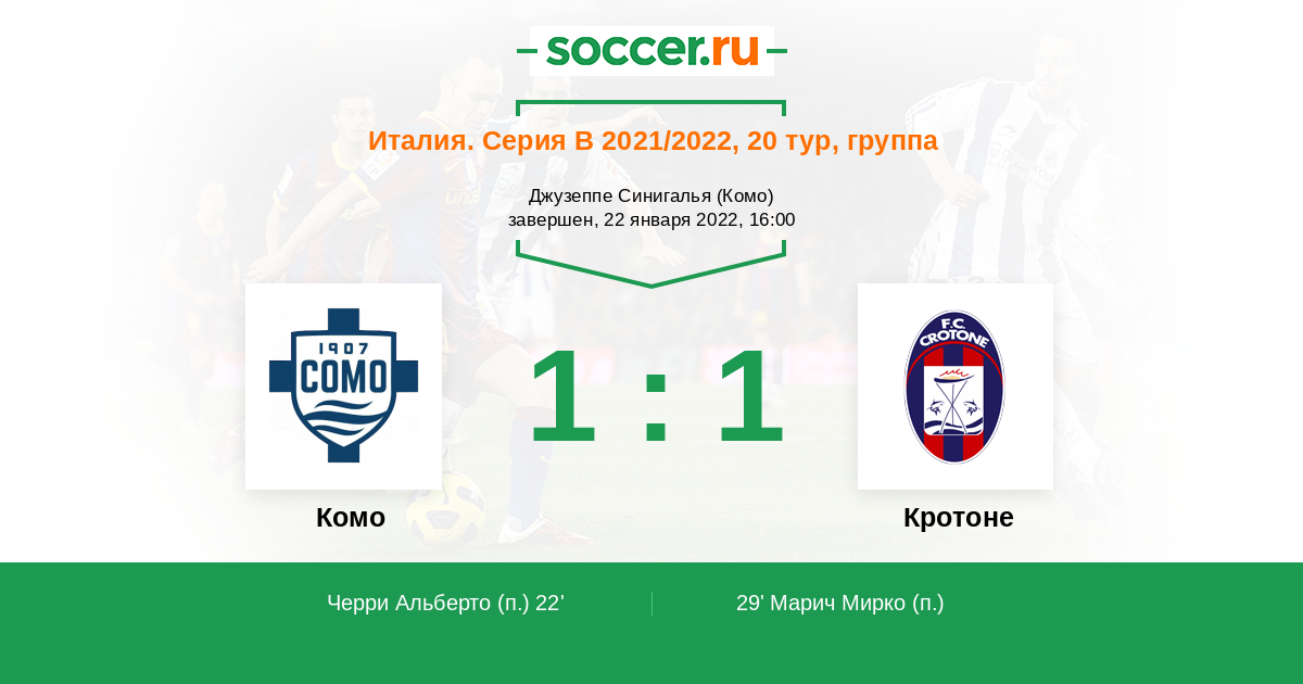 Кротоне крайне неудачно играет на выезде: всего одна ничья при семи поражениях и команда всегда пропускает. Так что Комо точно забьет и скорее всего выиграет, во всяком случае шансы у них намного выше, чем у Кротоне.