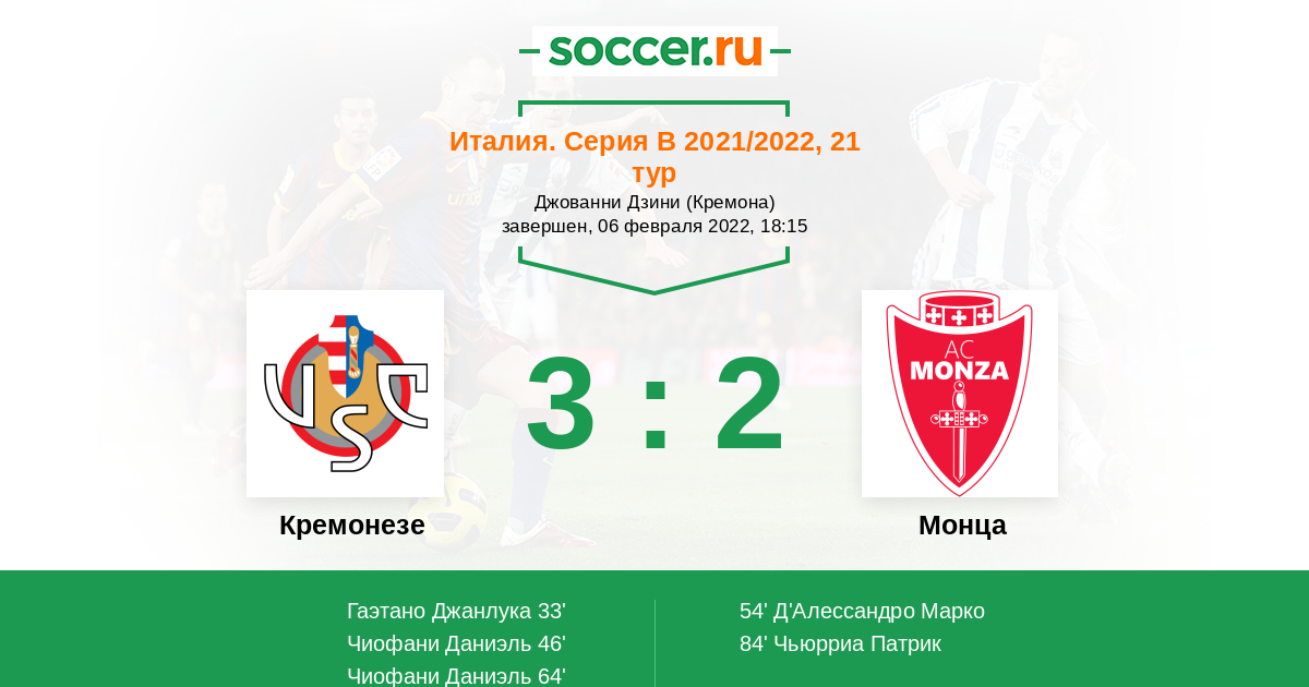 Протокол матча Кремонезе против Монца