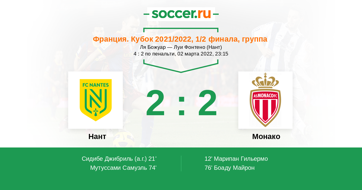 21' (1:1) Автогол Сидибе Джибриль (19)