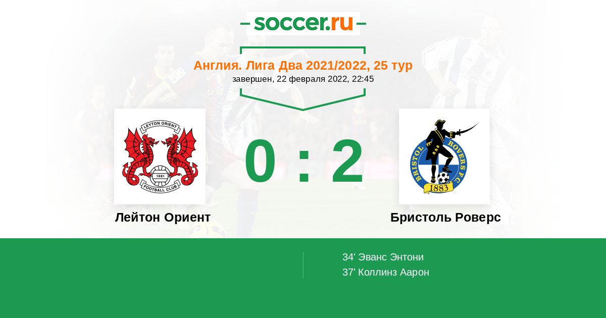 Протокол матча Лейтон Ориент против Бристоль Роверс