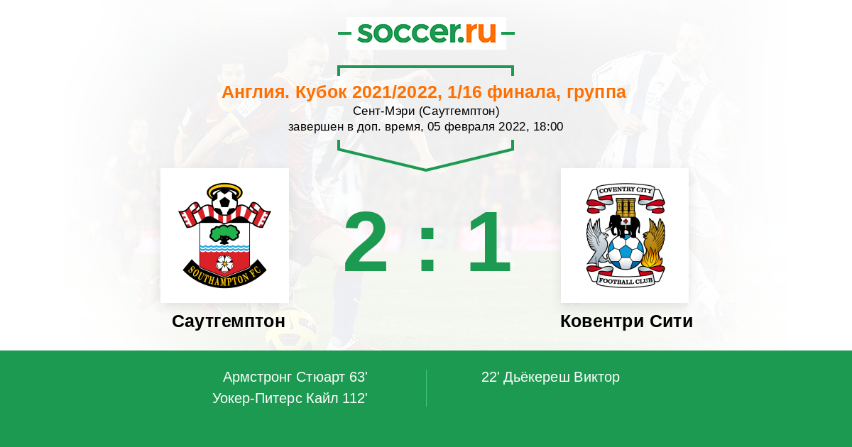 Протокол матча Саутгемптон против Ковентри Сити