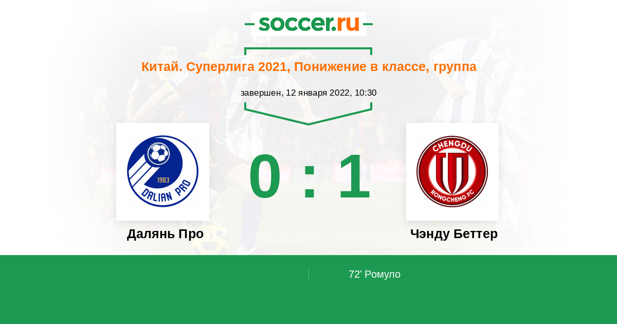 Протокол матча Далянь Про против Чэнду Беттер