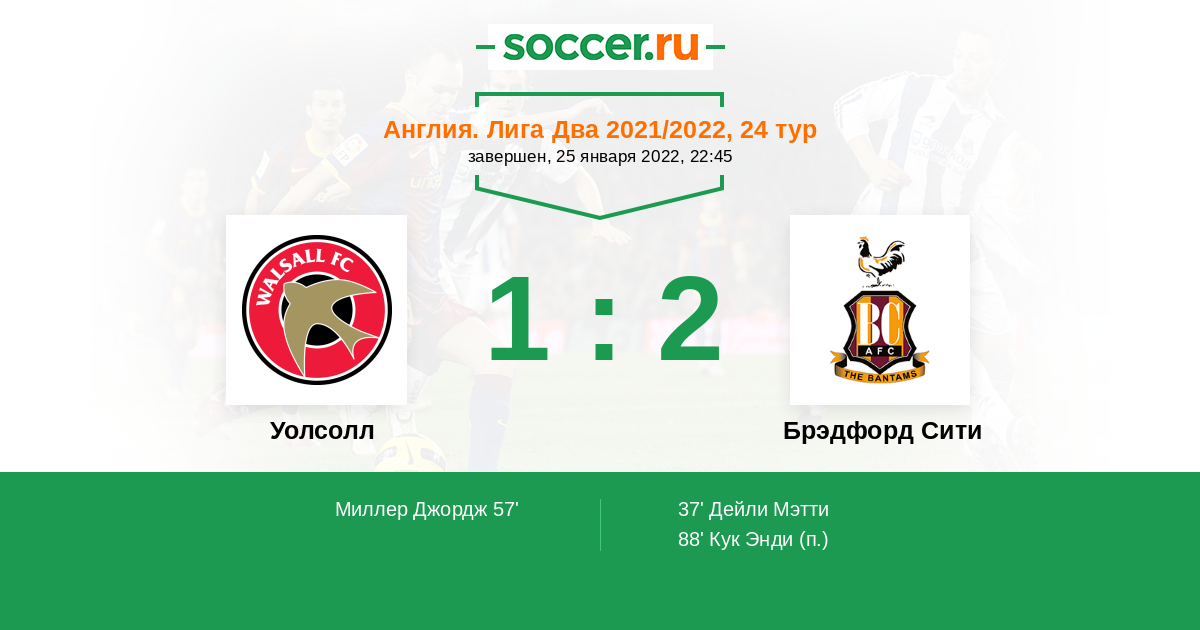 Протокол матча Уолсолл против Брэдфорд Сити