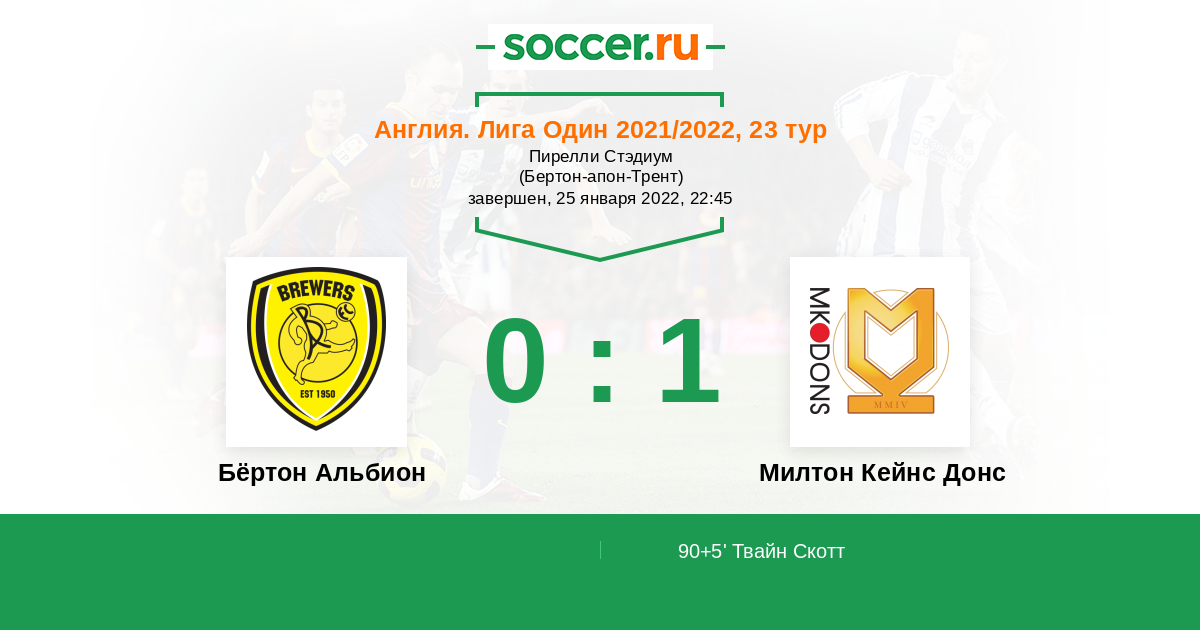 Протокол матча Бёртон Альбион против Милтон Кейнс Донс