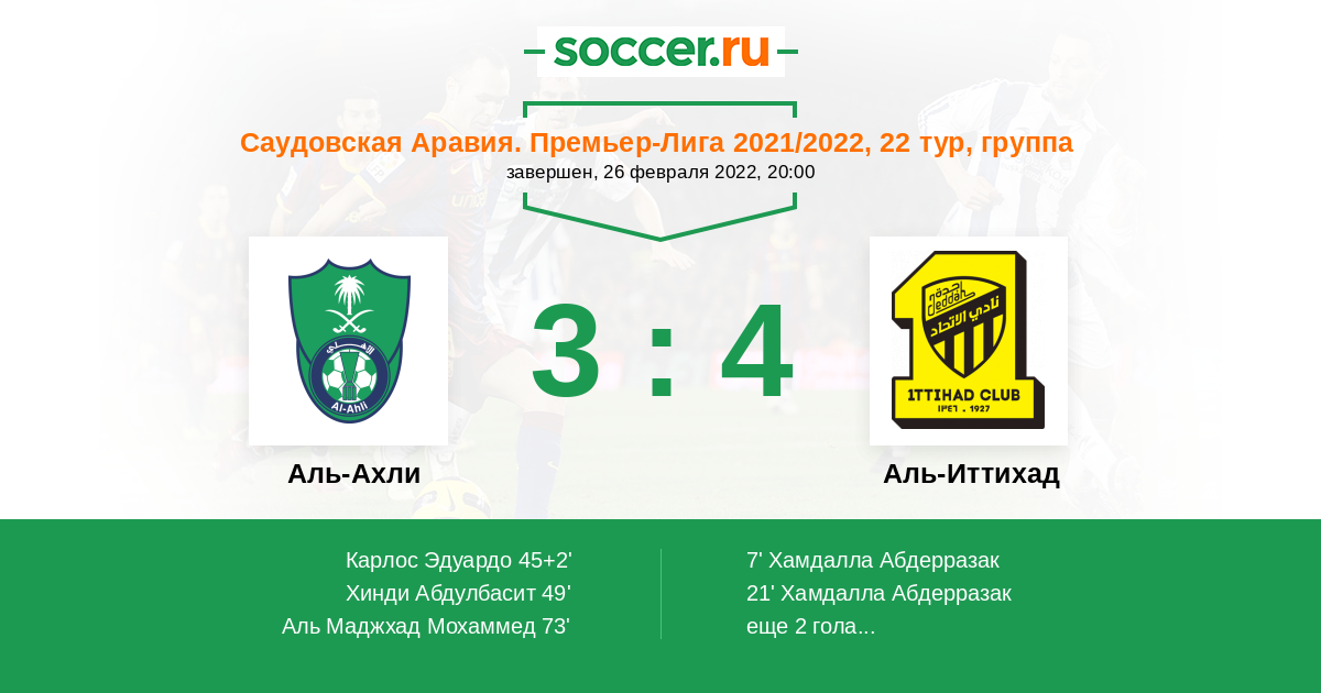 Протокол матча Аль-Ахли против Аль-Иттихад