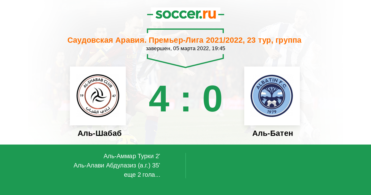 35' (2:0) Автогол Аль-Алави Абдулазиз (50)