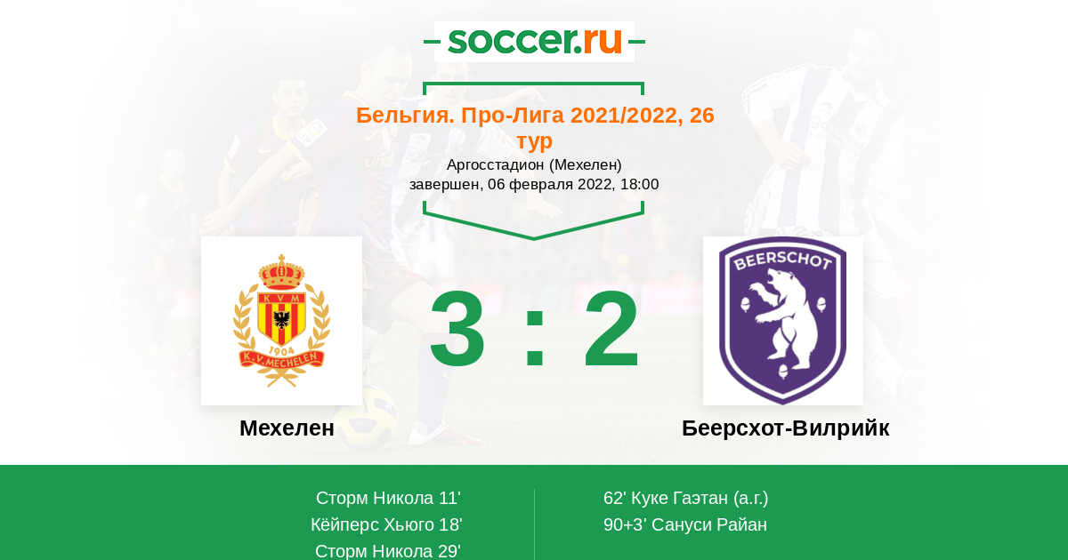 Протокол матча Мехелен против Беерсхот-Вилрийк