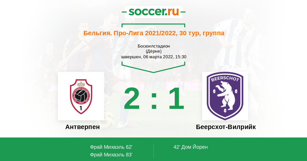 Протокол матча Антверпен против Беерсхот-Вилрийк