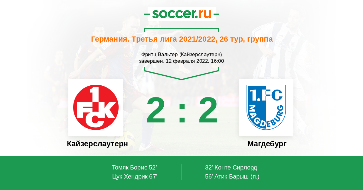 Протокол матча Кайзерслаутерн против Магдебург