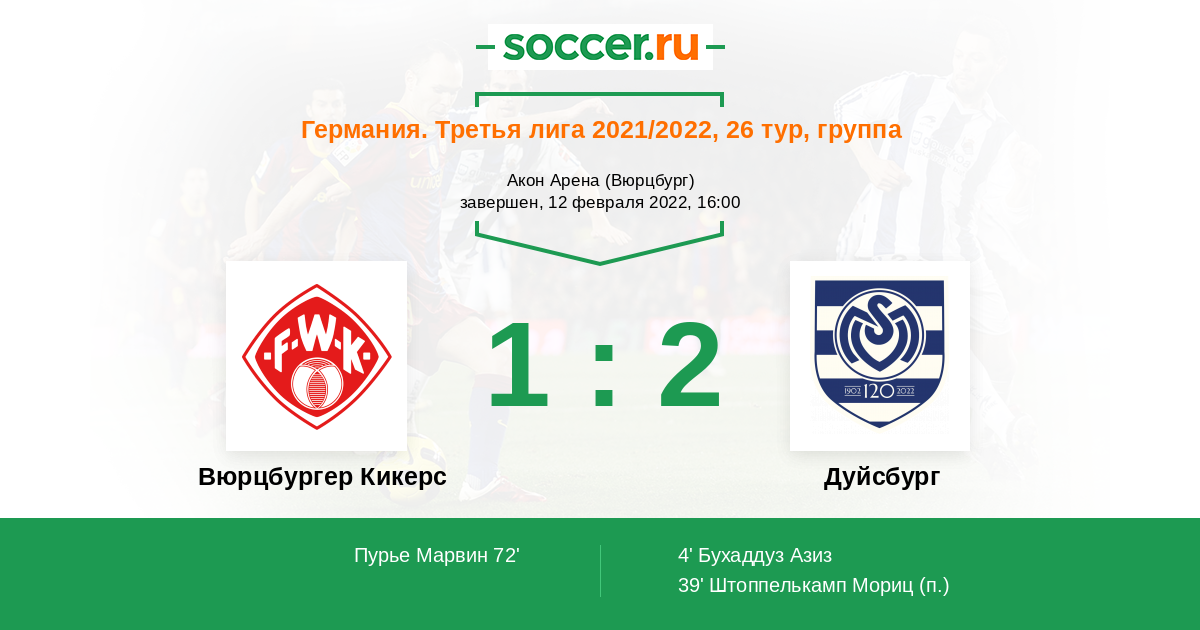 Протокол матча Вюрцбургер Кикерс против Дуйсбург