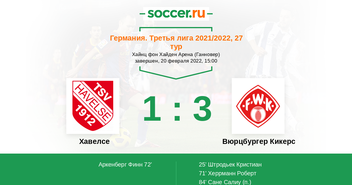 Протокол матча Хавелсе против Вюрцбургер Кикерс