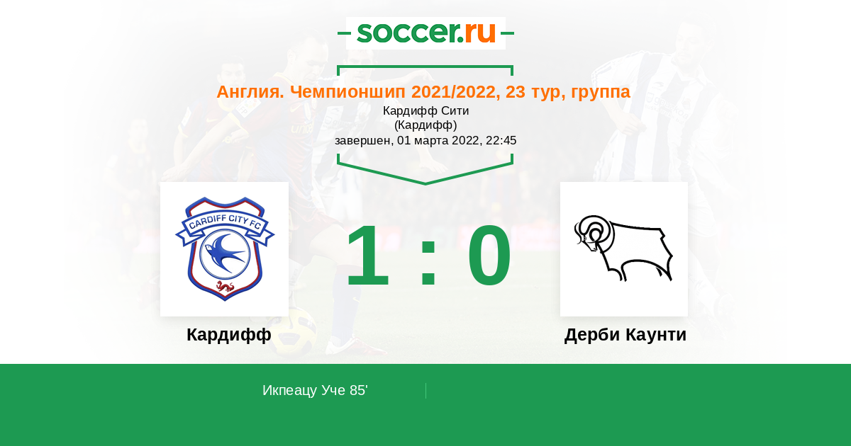 Протокол матча Кардифф против Дерби Каунти