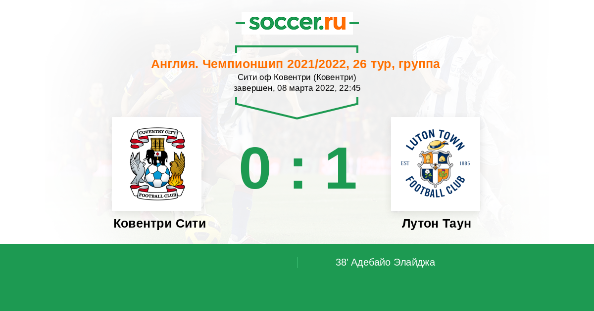 Протокол матча Ковентри Сити против Лутон Таун