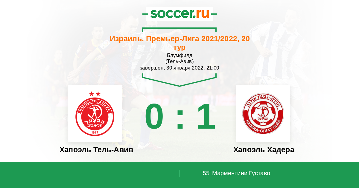Протокол матча Хапоэль Тель-Авив против Хапоэль Хадера