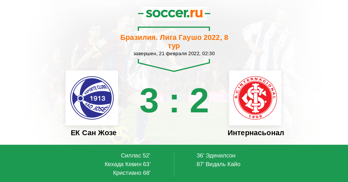 Протокол матча ЕК Сан Жозе против Интернасьонал