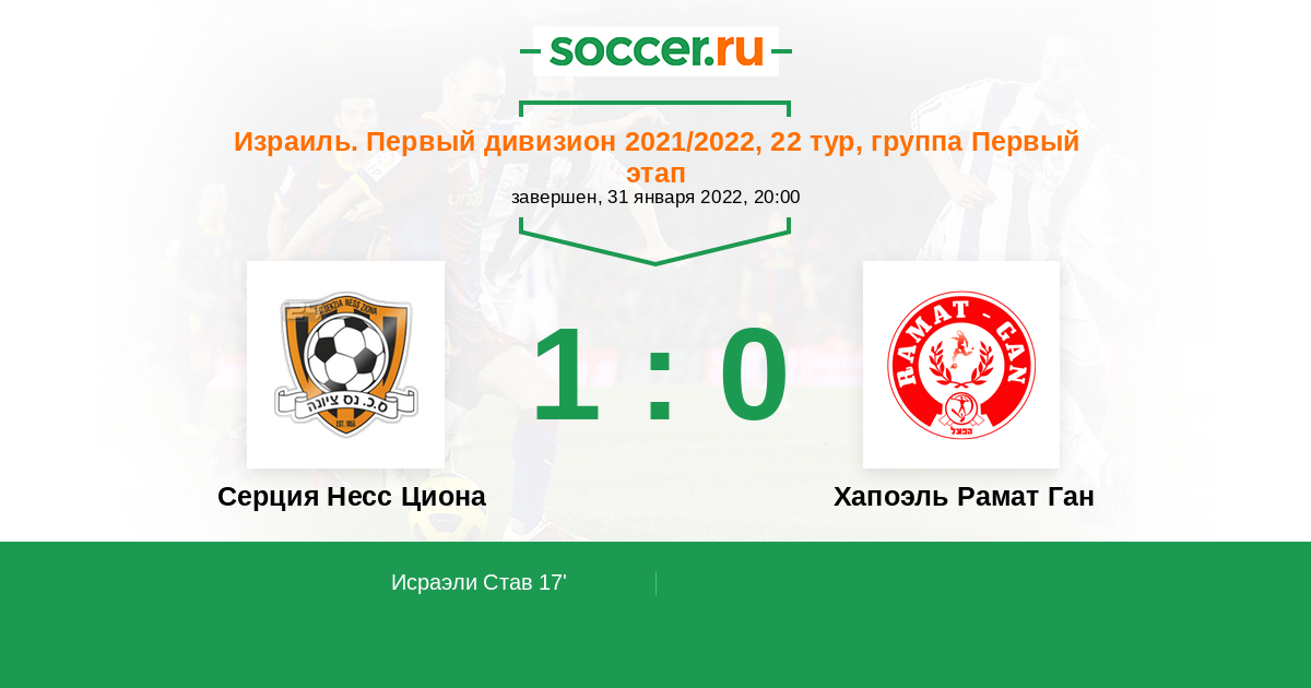 Протокол матча Серция Несс Циона против Хапоэль Рамат Ган