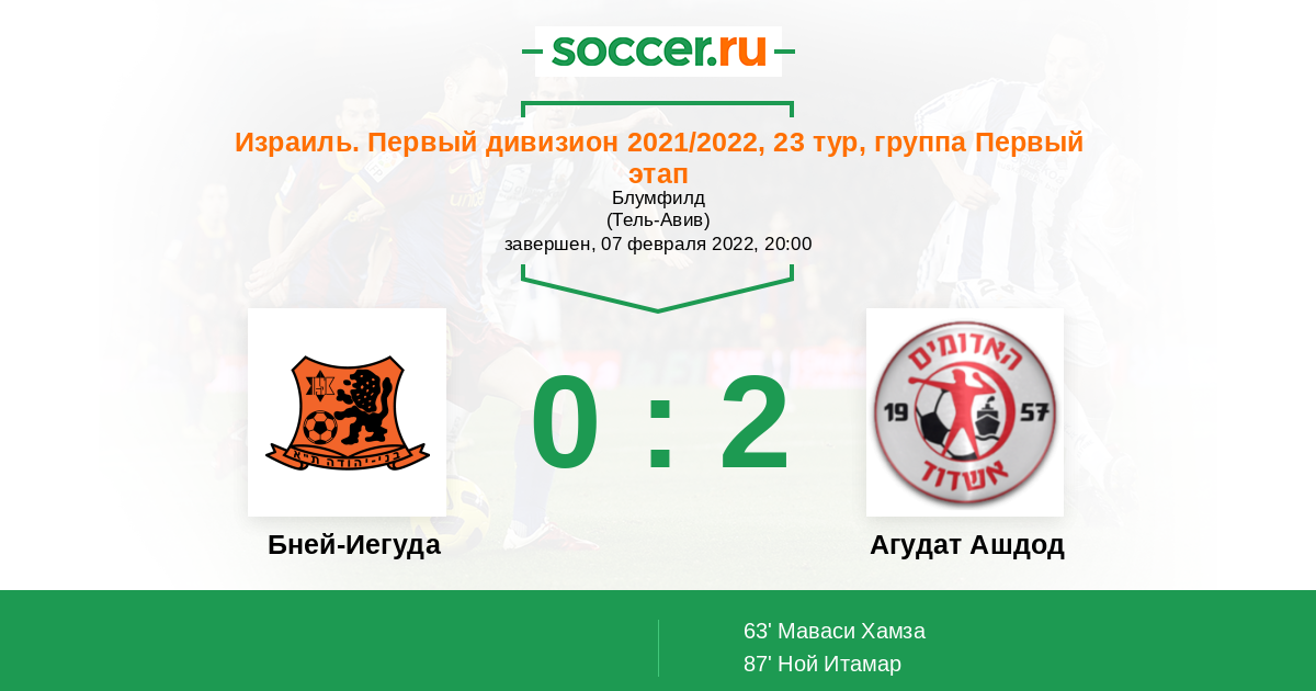 Протокол матча Бней-Иегуда против Агудат Ашдод