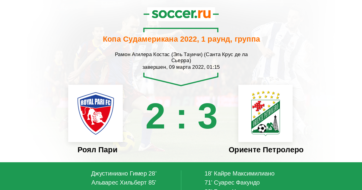 Протокол матча Роял Пари против Ориенте Петролеро