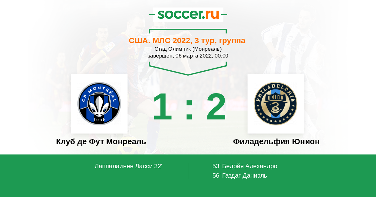Протокол матча Клуб де Фут Монреаль против Филадельфия Юнион