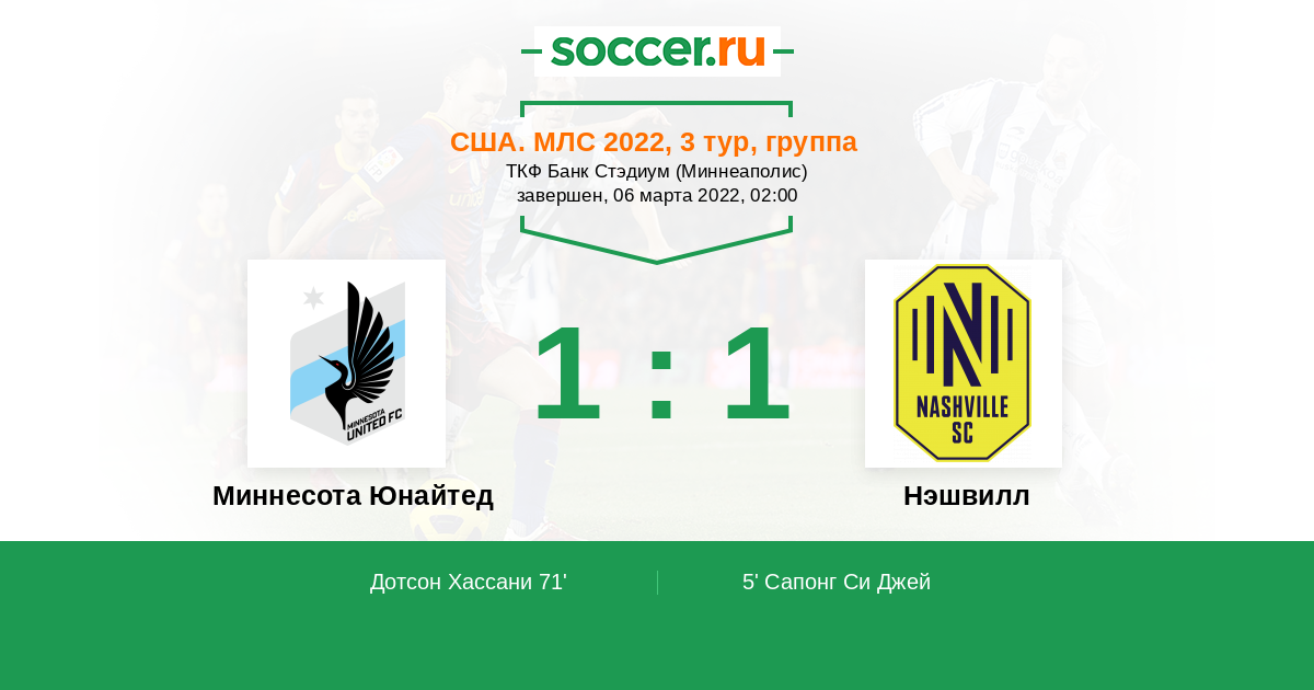 Протокол матча Миннесота Юнайтед против Нэшвилл