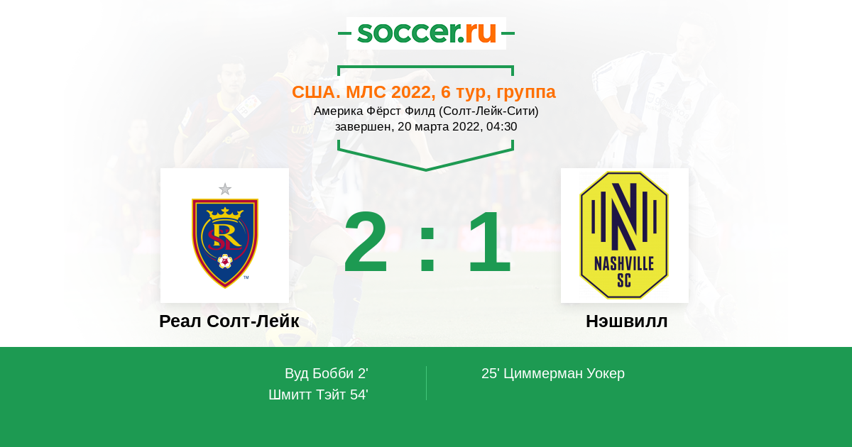 Протокол матча Реал Солт-Лейк против Нэшвилл