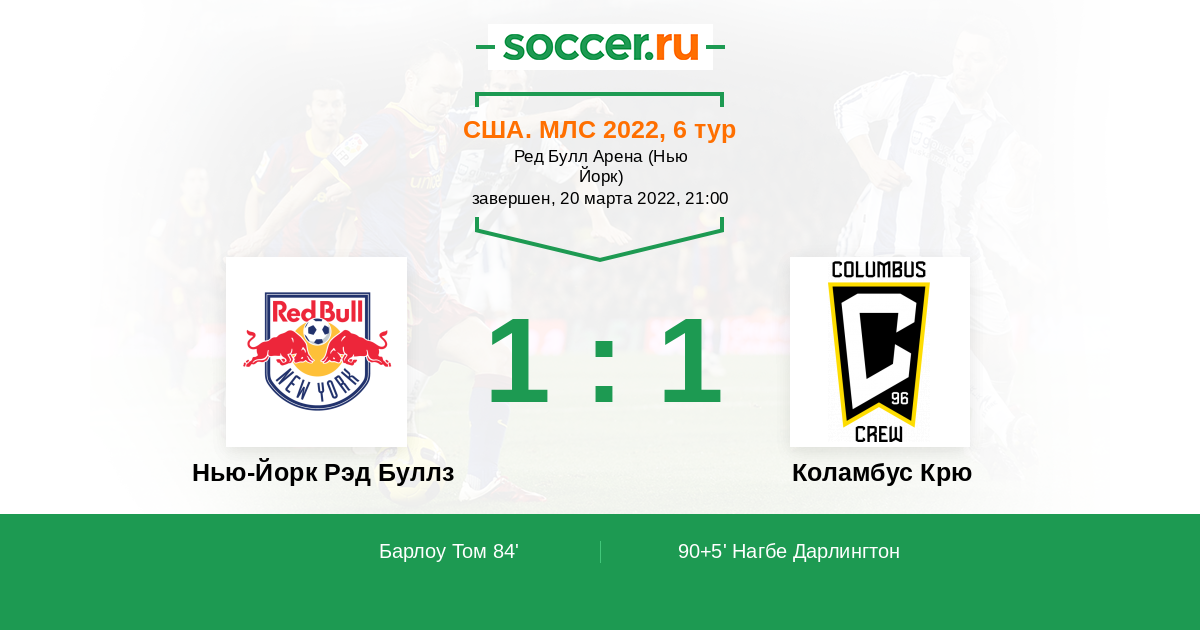 Протокол матча Нью-Йорк Рэд Буллз против Коламбус Крю