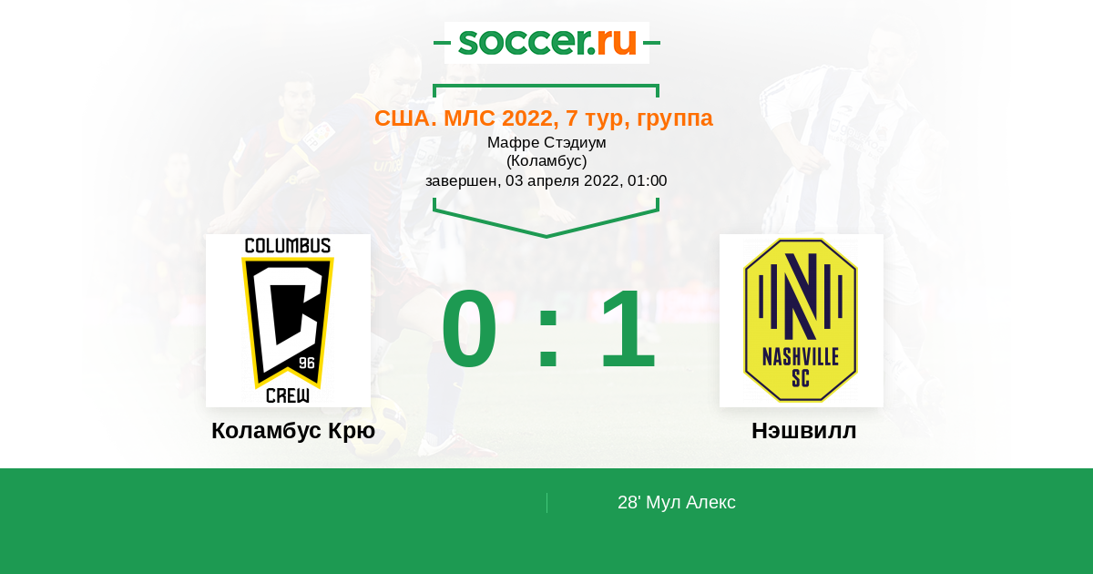 Протокол матча Коламбус Крю против Нэшвилл