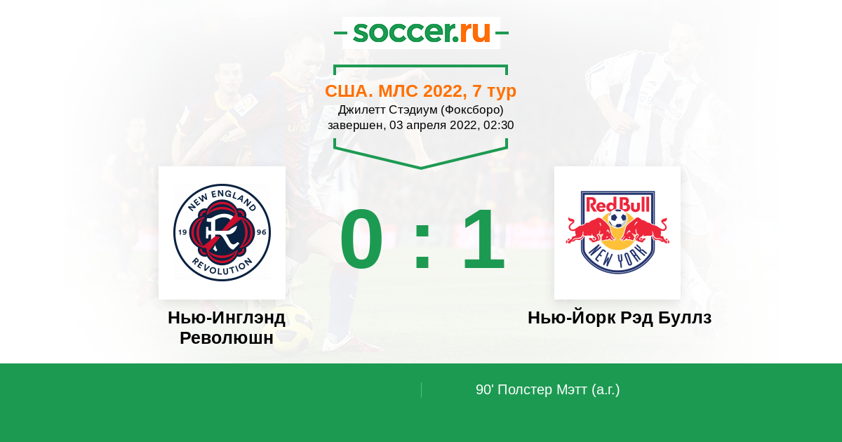 Протокол матча Нью-Инглэнд Революшн против Нью-Йорк Рэд Буллз