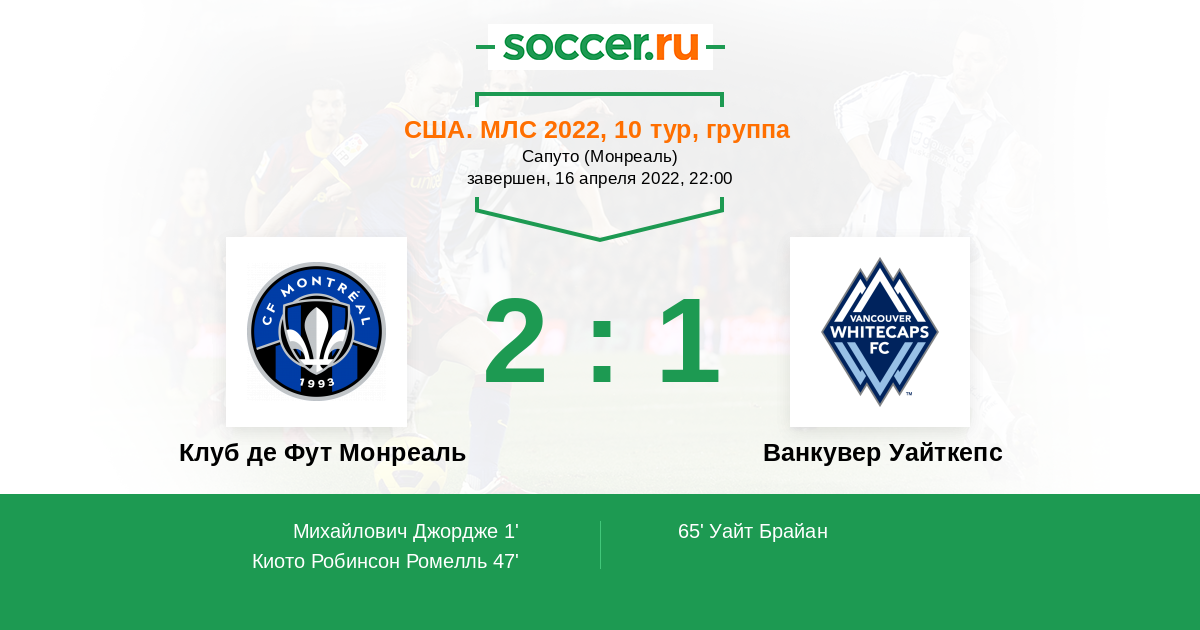 Протокол матча Клуб де Фут Монреаль против Ванкувер Уайткепс