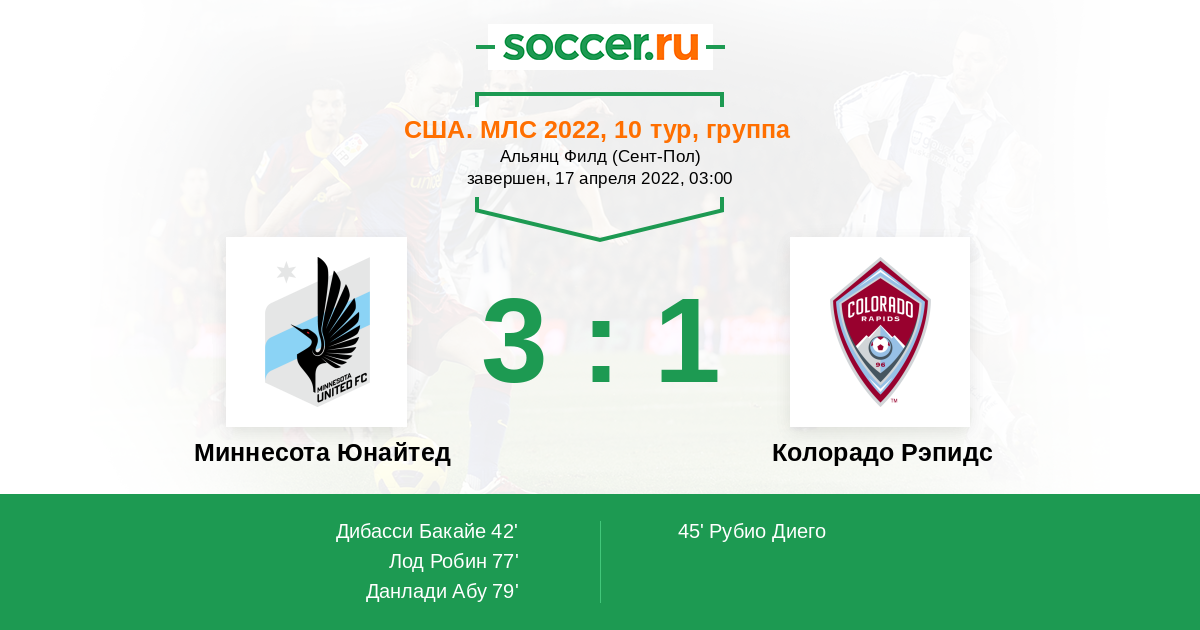Протокол матча Миннесота Юнайтед против Колорадо Рэпидс