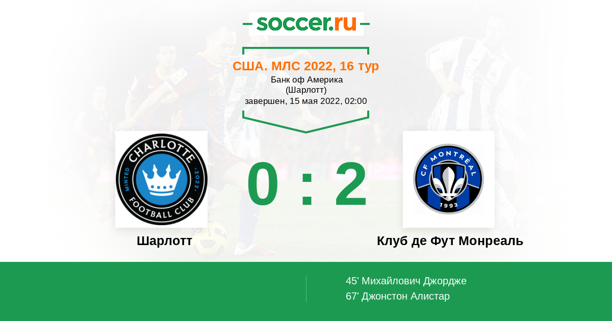 Протокол матча Шарлотт против Клуб де Фут Монреаль