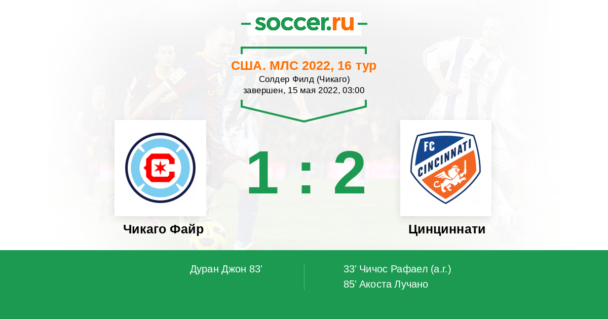 Протокол матча Чикаго Файр против Цинциннати