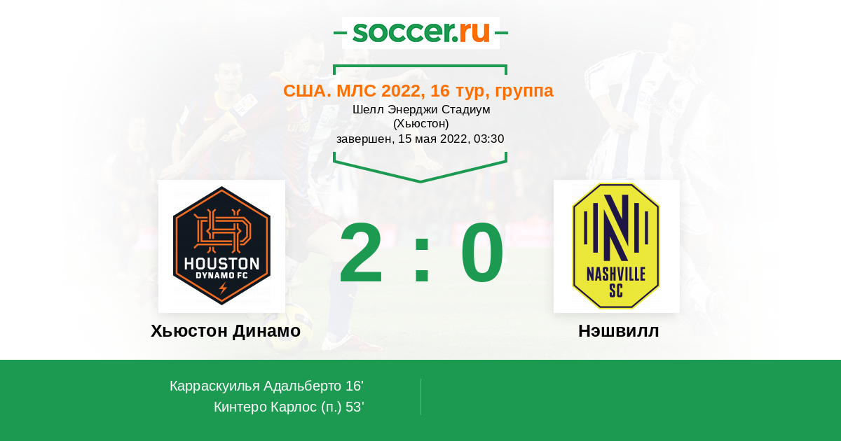 Протокол матча Хьюстон Динамо против Нэшвилл