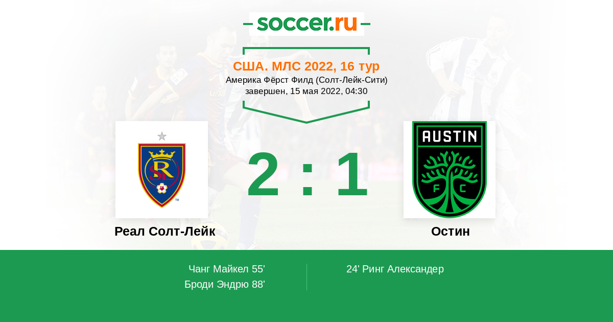 Протокол матча Реал Солт-Лейк против Остин