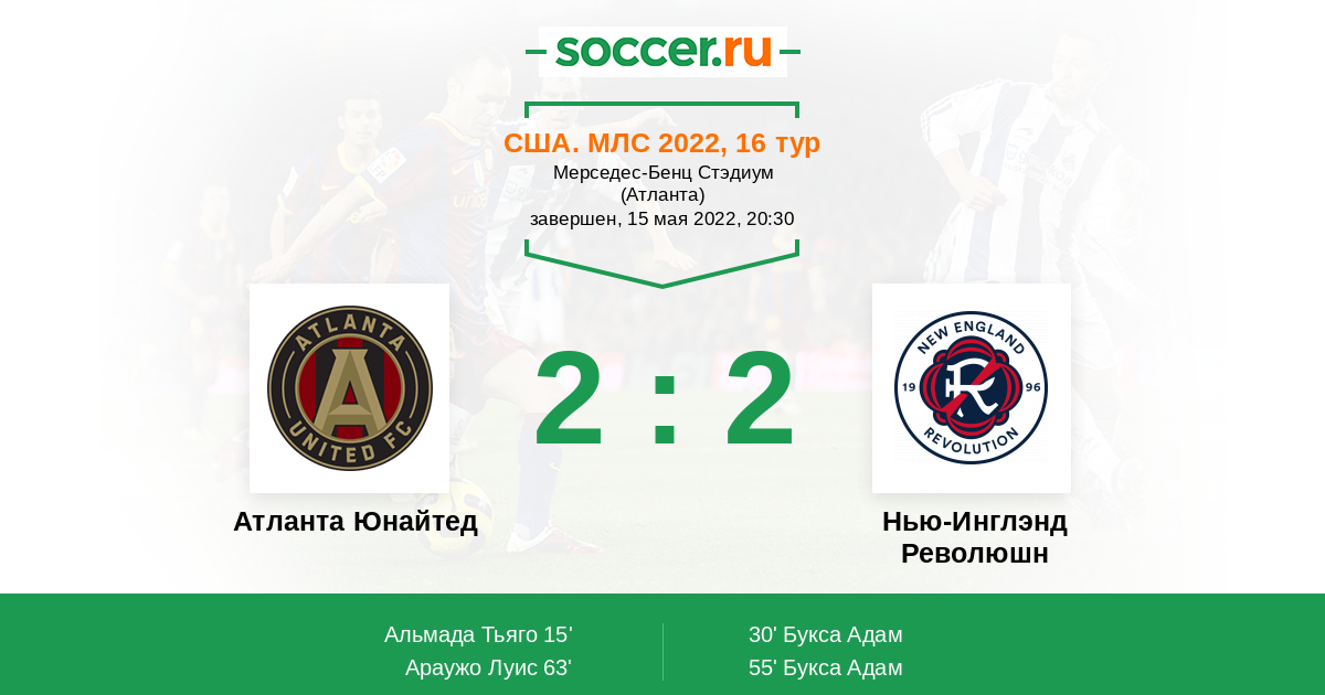 Протокол матча Атланта Юнайтед против Нью-Инглэнд Революшн