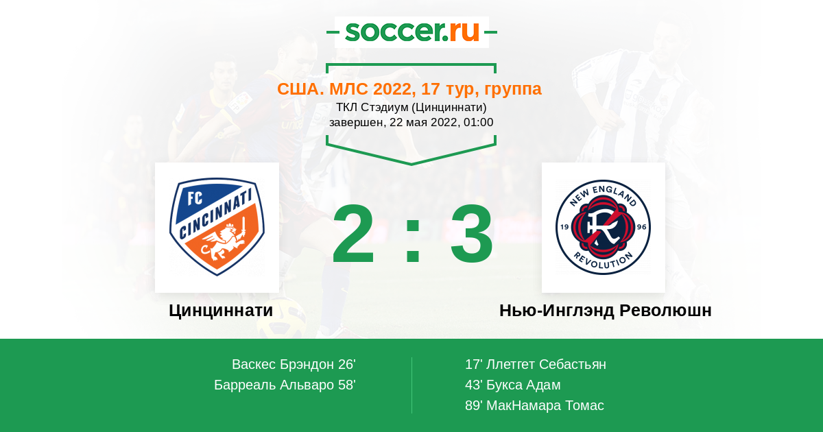 Протокол матча Цинциннати против Нью-Инглэнд Революшн