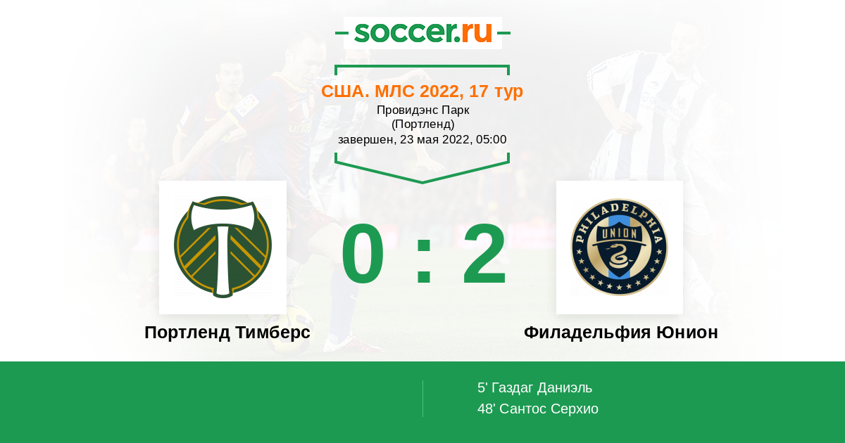Протокол матча Портленд Тимберс против Филадельфия Юнион