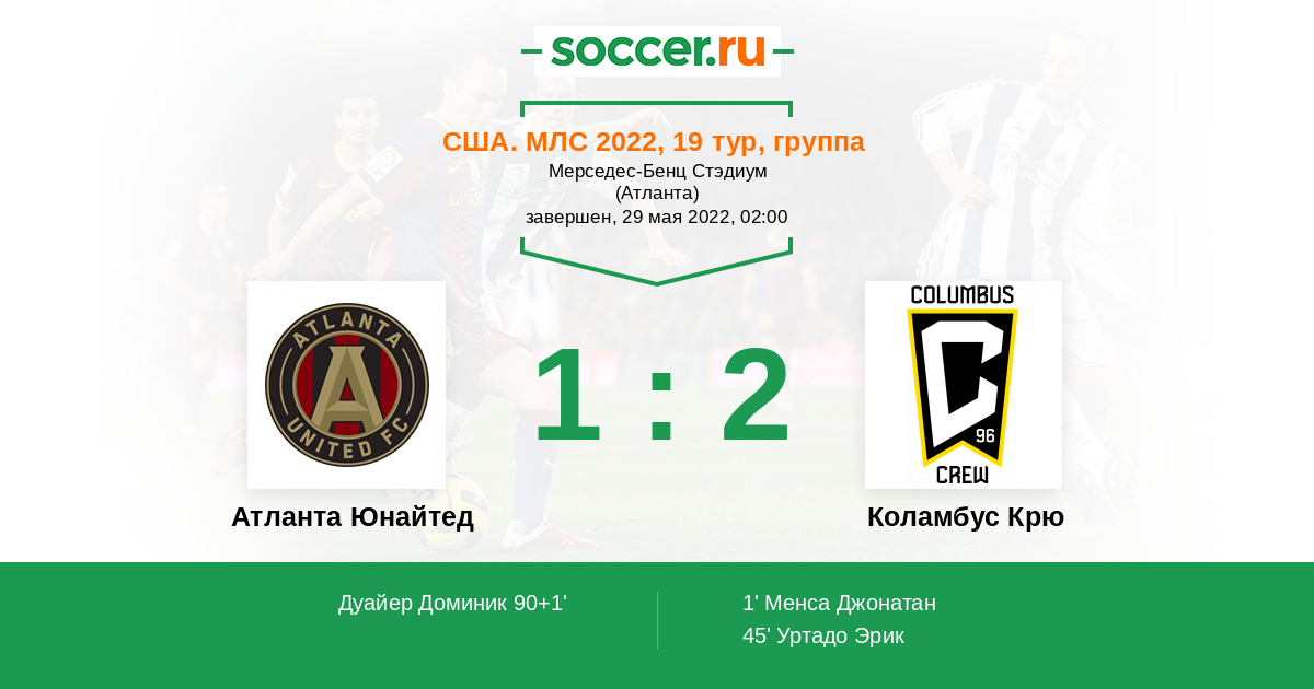 Протокол матча Атланта Юнайтед против Коламбус Крю