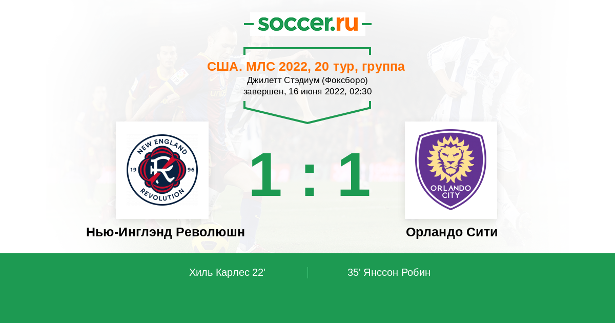 Протокол матча Нью-Инглэнд Революшн против Орландо Сити